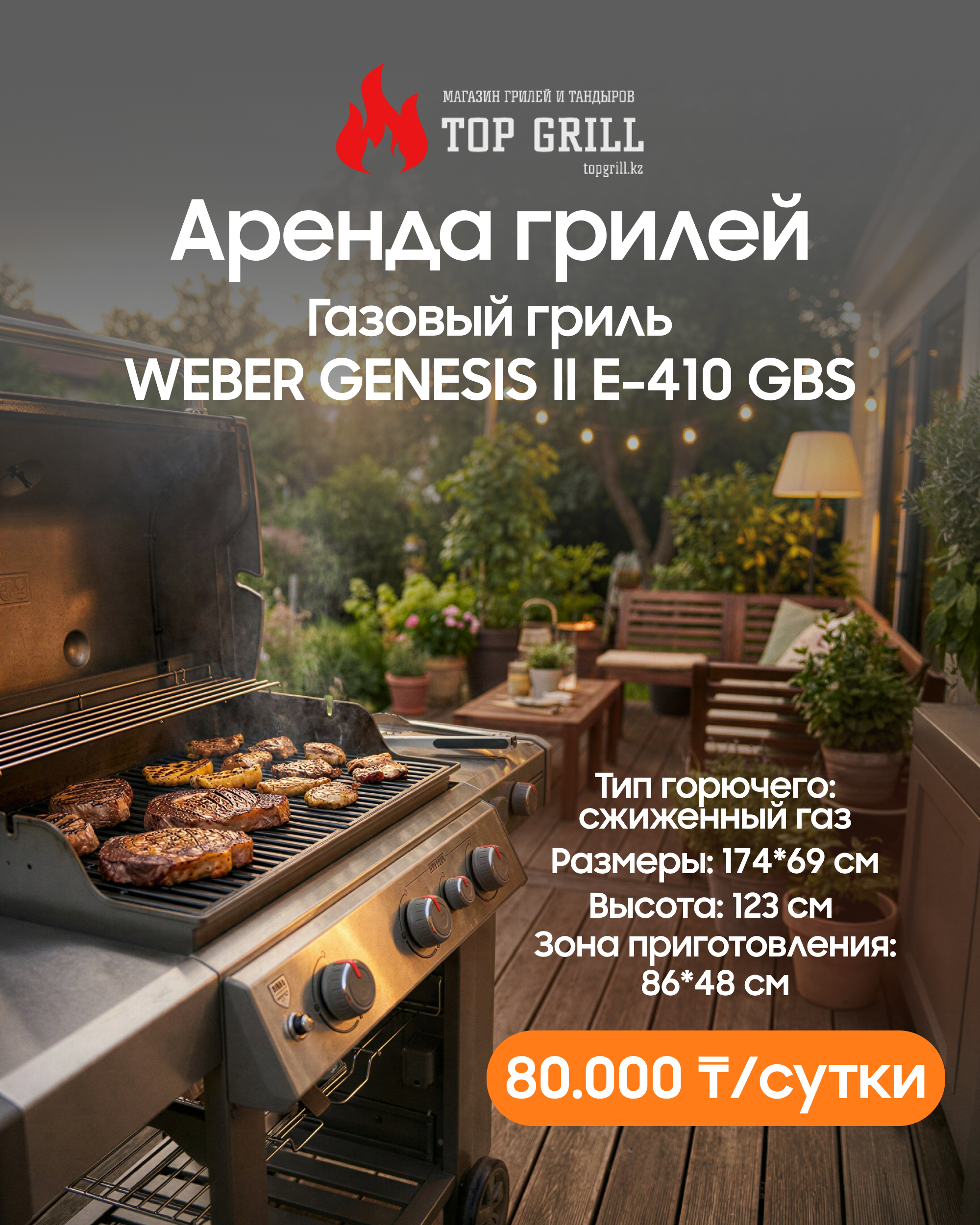 Weber Genesis II E-410 GBS – это продвинутый гриль с внушительным функционалом, который очарует как новичков, так и профессионалов в мире барбекю.
