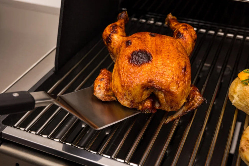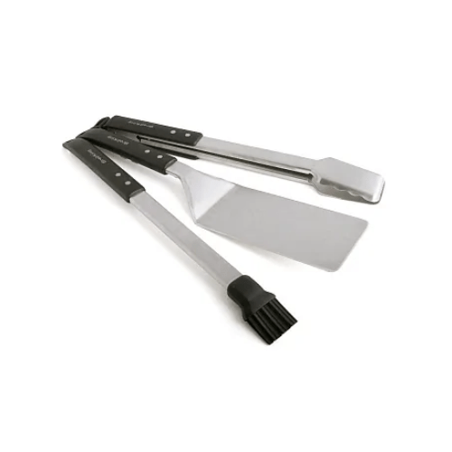 Набор Broil King Imperial из 3-х предметов выполнен из нержавеющей стали. Особенностью набора является удлинённая лопатка — благодаря увеличенной площади, ей удобно снимать с решетки рыбу, большие куски мяса и птицу. Плоская сторона щипцов позволит быстро и легко отделить стейк от решетки, а ребристая сторона надежно зафиксирует кусок.