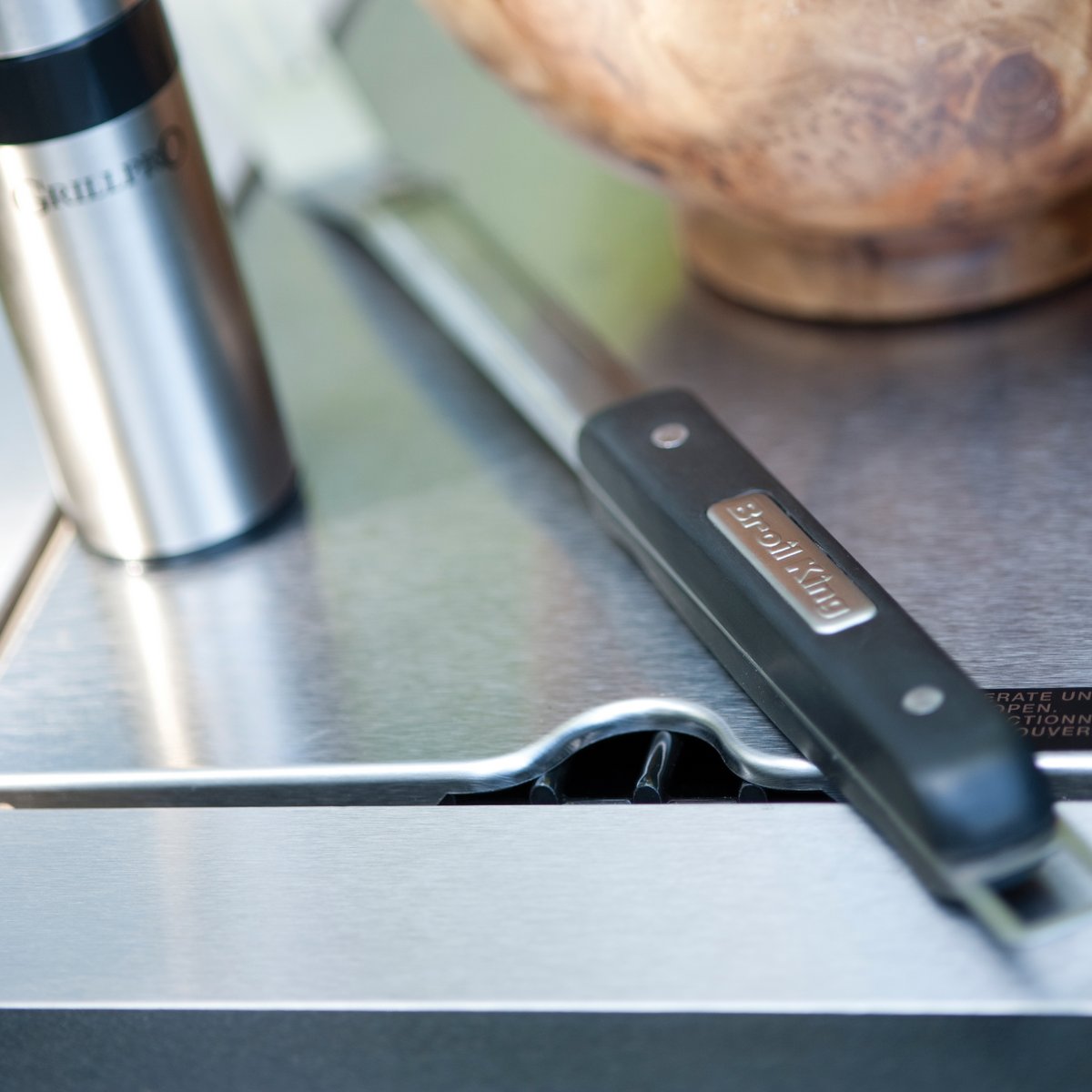 Набор из 4 инструментов для гриля серии Broil King® Imperial™ обладает отличным дизайном, способным удовлетворить даже самого требовательного повара. Инструменты сделаны из цельной нержавеющей стали 1.8 мм и имеют большие полимерные ручки с гладкими вставками из нержавеющей стали – идеальное сочетание практичности и прочности. В набор входит лопатка, щипцы, силиконовая кисточка и щетка для гриля.